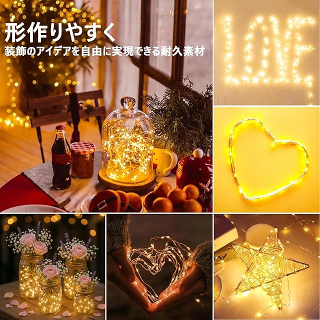 beefeed LEDイルミネーションライト 【2025業界の技術革新·長く太くします】 防雨型 破損しにくい イルミネーション 銅線 ワイヤーライト 10m 100LED球 8パターン 屋内/屋外/結婚式/ハロウィン/クリスマス/クリスマスツリー電飾/野外キャンプ/庭/祭り/生日/ガーデンライト/パーティー電飾(暖色)