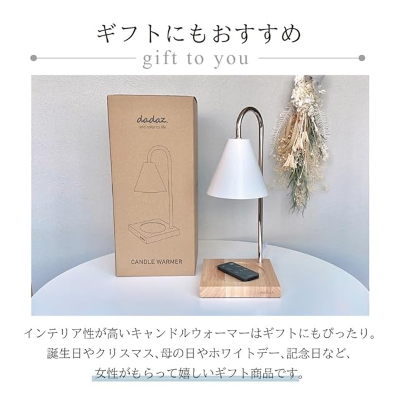 dadaz キャンドルウォーマー タイマー 間接照明 調光 ホワイト 遠隔リモコン モノトーンRC