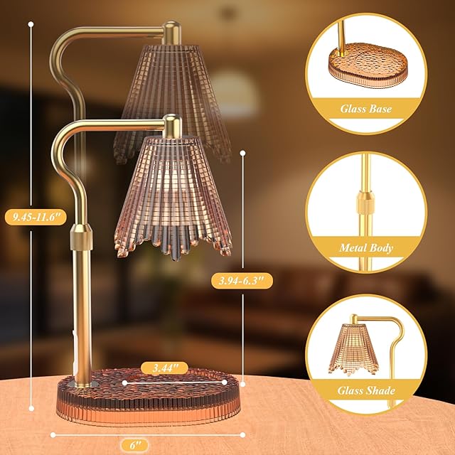 高さ調節可能キャンドルウォーマーランプ - 4段階調光、タイマー機能、おしゃれなデザイン,ブラウン(複数カラー)