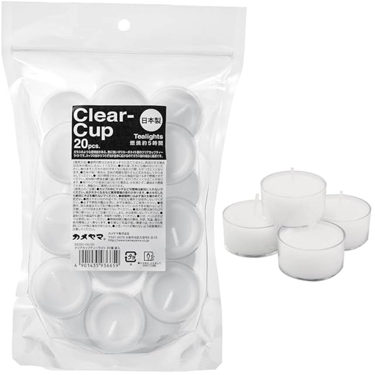 商品名:カメヤマ クリアカップティーライト 20個袋入り ローソク キャンドル 約5時間