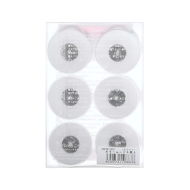 燃焼時間:約4時間 / アロマ:無香料 / 内容:6個入り / 透明カップの素材:PC ( ポリカーボネイト )