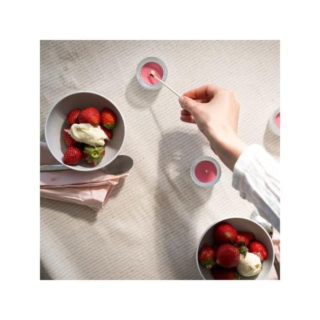 商品サイズ<br />燃焼時間: 3.5 時間<br />直径: 3.8cm<br />パッケージ個数: 30 ピース<br /><br />キャンドルカップ:アルミニウム<br />キャンドル:植物由来ワックス(50%以上) パラフィンワックス 香り<br />芯:綿、植物繊維(セルロース)<br /><br />直射日光の当たらない、涼しくて乾燥した場所に保管してください<br /><br />キャンドルを灯している間はそばを離れないでください。<br />引火する可能性のあるものの近くで使用しないでください<br />お子さまやペットを近づけないでください<br />キャンドルの間隔を5cm以上空けてください<br />風の当たる場所で使用しないでください<br />熱源のそばに置かないでください<br />芯を1cmに切ってください<br />キャンドル火消しを使用してください。 吹き消さないでください<br />ロウ溜まりに、マッチの燃えさしや芯の燃えかすなどを残さないでください<br />ご使用後は室内を換気してください<br />煙を直接吸い込まないようご注意ください<br />触らないでください。熱くなるおそれがあります<br /><br />日差しで温められたイチゴとバニラアイスクリームの夏らしい香り