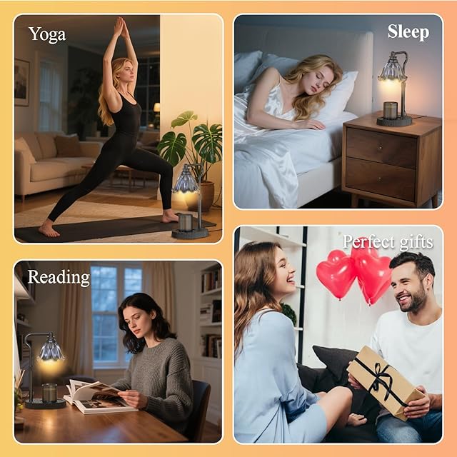 高さ調節可能キャンドルウォーマーランプ - 4段階調光、タイマー機能、おしゃれなデザイン,ブラック(複数カラー)