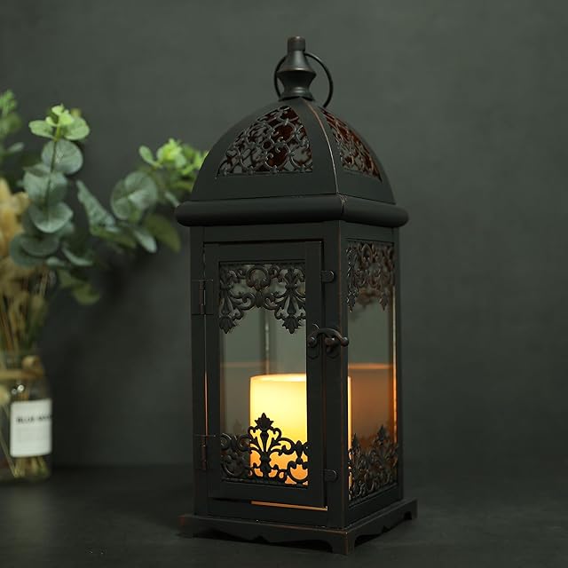 JHY DESIGN 复古スタイル キャンドルホルダー 38cm メタル 燭台 キャンドル ランタン おしゃれ 間接照明 ガーデン/ベランダ 屋外 屋内 照明 バー/結婚式 インテリア プレゼント ハロウィーン(ブラック)