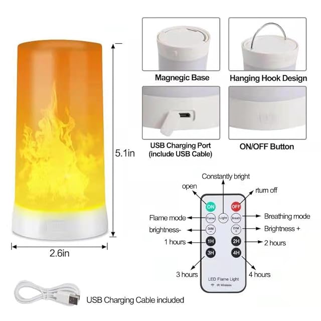 【マグネットベースとフックデザイン】充電式アウトドアランプは、内蔵のマグネットベースを使用して、オリジナルの燃焼装飾を任意の金属表面に貼り付けることができ、それは伝統的な炎の電球の完璧な代替品であり、私たちの炎の電球テーブルランプは、固定ベースや任意のケーブルの必要なく、スタンドアロンの炎の器具として使用することができます。