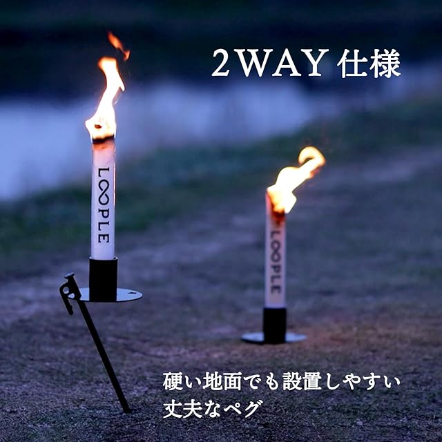 LOOPLE キャンプ トーチ 2本入 アウトドア用 無香料キャンドル 風に強い・映える炎・簡単設置 夜キャンプ 焚き火 の雰囲気作り 人気ギア 防災グッズ 2025年注目 ループル
