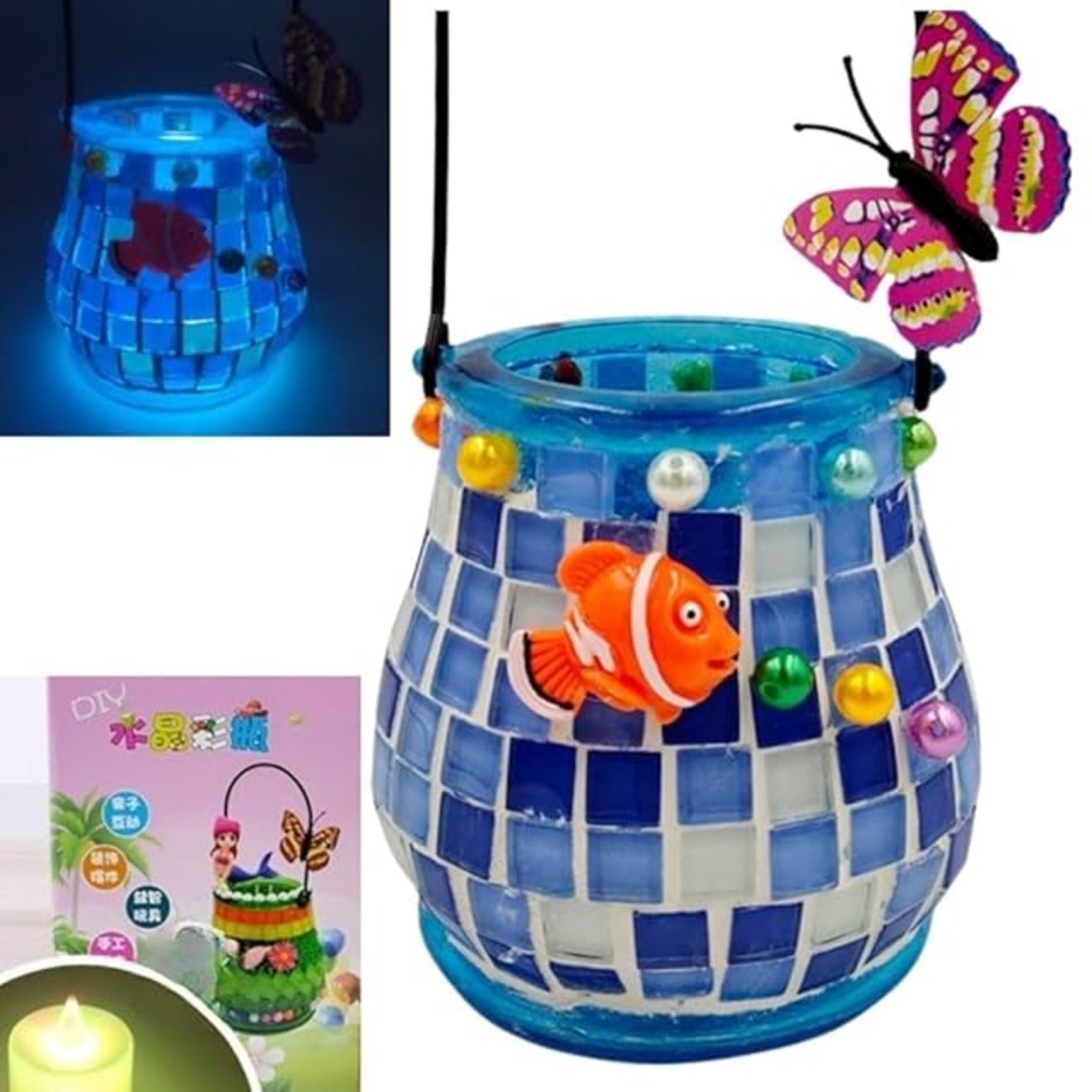 光る!モザイクランタン工作キット 手作りDIYセット LEDキャンドル付き 小学生 自由研究 メイキングトイ