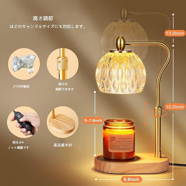 【さまざまなサイズのキャンドルに対応】木製の台座と高さ調整付きのワックスヒーターは、すべてのサイズのキャンドルと互換性があります。ベースとキャンドルヘッドの間の高さは6インチです。柔らかいハロゲンランプが心地よい雰囲気を作り出し、お気に入りのキャンドルの香りを部屋全体に均一に分配し、1日の終わりに喜びとリラックスを感じさせます。