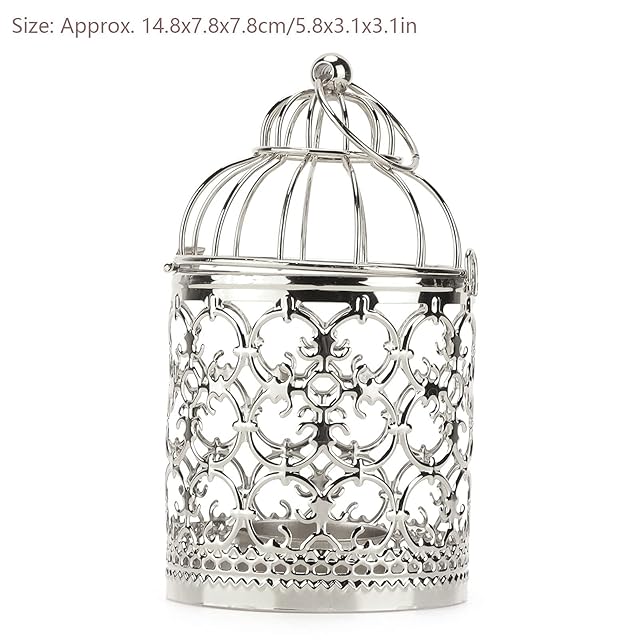 装飾キャンドルランタン 小さな金属キャンドルスティックホルダー ハンギングバードケージ ヴィンテージ 装飾センターピース ウェディングパーティー クリスマス (Aタイプ シルバー)