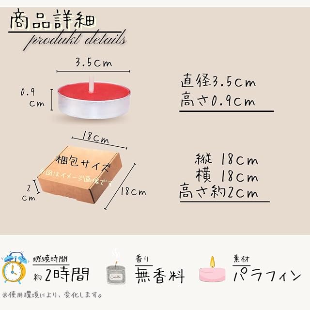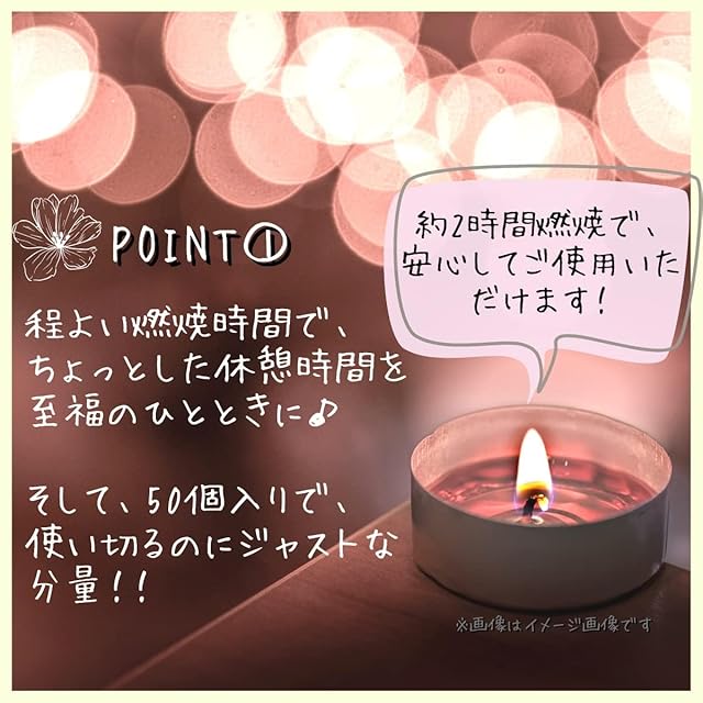 商品名:HIDERME ティーライトキャンドル ろうそく アルミカップ 無香料 50個入り (ピンク, 円形)