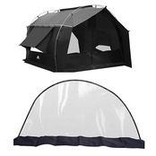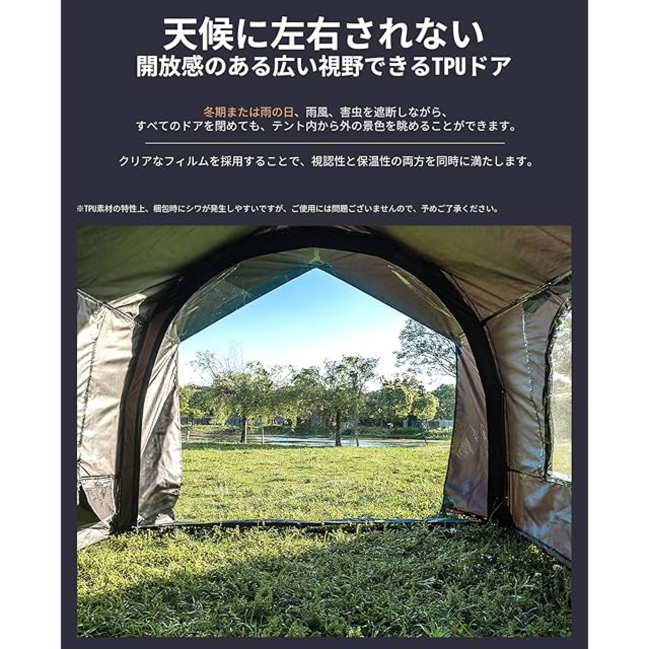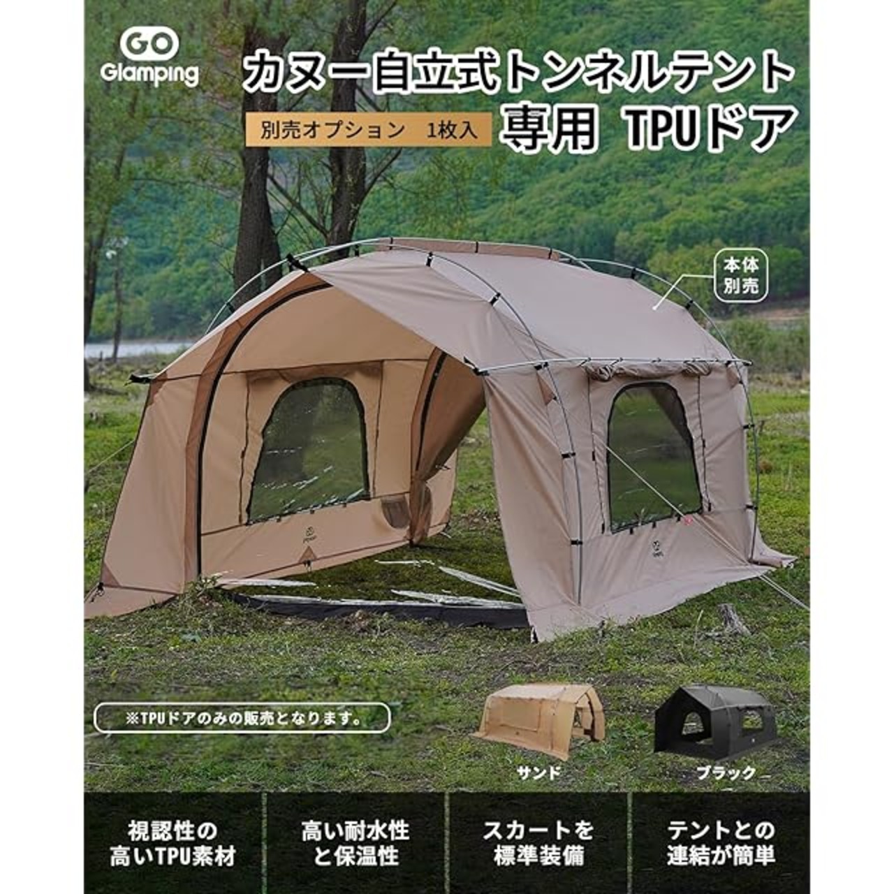 商品名:GOGlamping トンネルテント 自立式【カヌー】 1人 2人用テント ツールーム アルミポール付属 メッシュ付き前後ドア 「片側ドア取り外し可能」 メッシュ付き立体窓 防虫 通気 UVカット 耐水圧3000㎜ 軽量 コンパクト 設営簡単 ソロキャンプ アウトドア 収納袋付き ー290×180×150cm (クリア+ブラック(オプションTPUドア1枚入))
