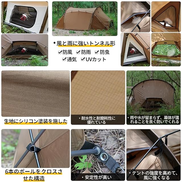 商品名:deerestトンネルテントkehriman2人用快適アウトドアキャンピン日除け風通し良い防風/防雨/UVカット/通気 家庭/カップルキャンプ適用アウトドア/キャンプギア