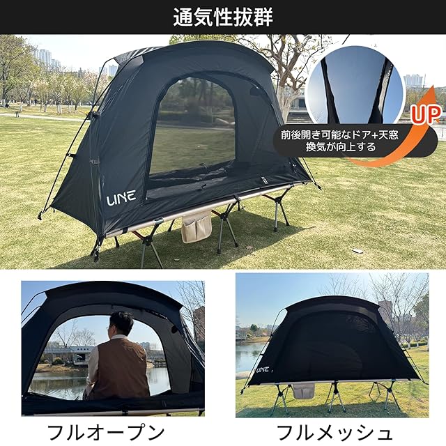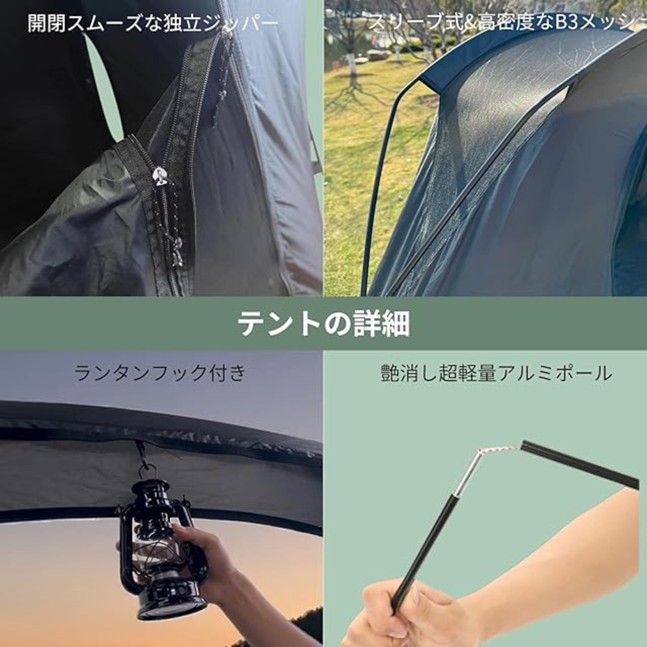 【360°全方位高密度メッシュインナー&夏の蒸れ・虫問題を一掃】特殊メッシュ素材による通気構造が,暑い日でも涼風を循環させて蒸れを大幅低減します。微細な網目が蚊や小虫の侵入を完全ブロック,虫除けスプレー不要で夏のキャンプ安眠を実現します。ドアと天窓の連動設計で空気の流れを最適化,テント内を常に清潔な状態に維持します。