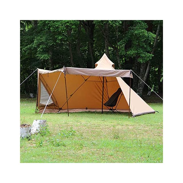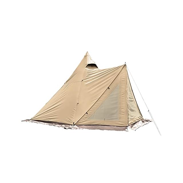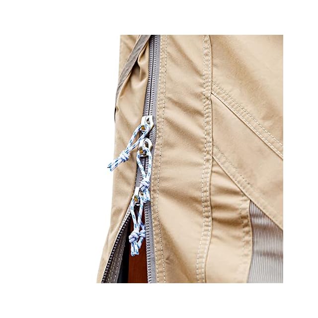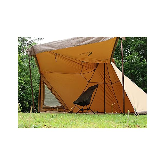 素材:[本体] コットン混紡生地( TC ) 撥水加工済み( ポリエステル65%コットン35% ) [裾部( スカート )] ポリエステル [メインポール] スチール製5本継ぎ( Φ32mm×230cm )×1本 [サブポール] スチール製4本継ぎ( Φ22mm×170cm )×1本