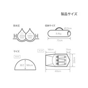 材質:フライシート:ポリエステル150D(PUコーティング)フロア:ポリエステル210D(PUコーティング)フレーム:アルミ合金、スチール