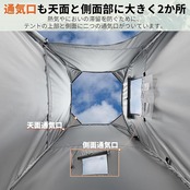 【多機能テント】二層構造の窓付き、天井部分と背後上部の位置が開けられるようになっていて,開ける時は空気の循環を促進して、同時に昆虫の浸入を防ぎます。閉める時フルクローズにでき、気になる視線をシャットアウトし、プライベートの確保ができます。