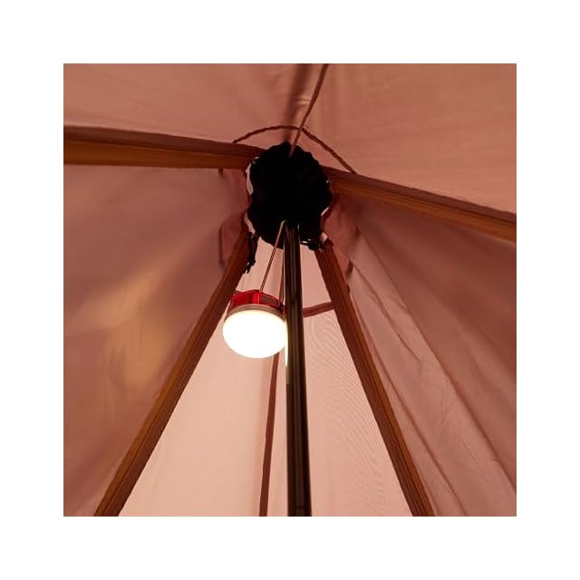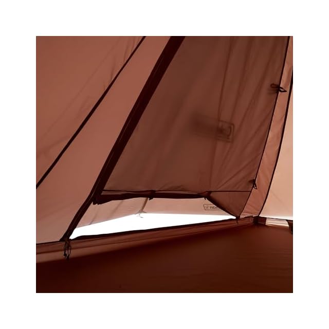 【3~4人用テント】リサイクルポリエステルを使用した、コンパクトサイズのティピー型テント。インナーテントの奥行が230㎝あるので2人使用時でもゆったりと過ごすことができます。