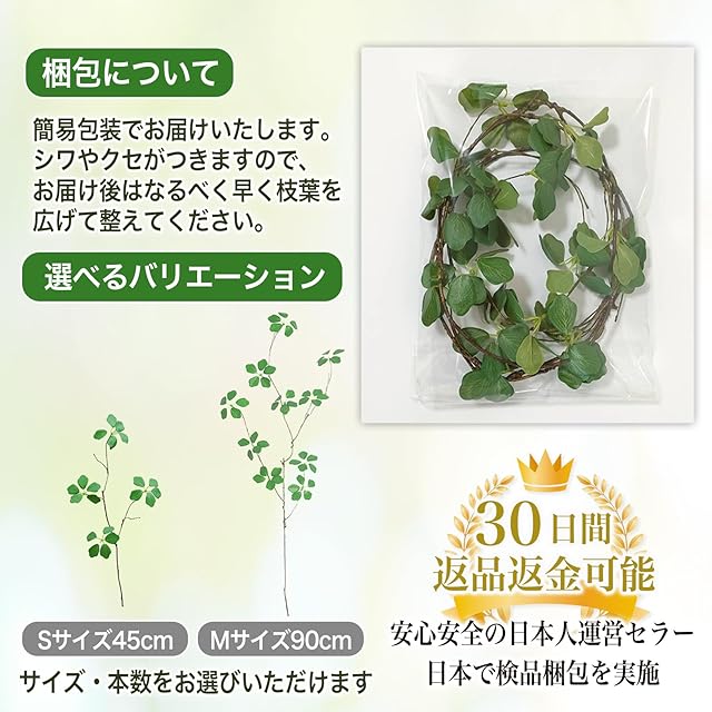 ✅ 製品サイズ:Sサイズは約45cm、Mサイズは約90cmです。お好みのサイズと本数をお選びください。切り分ければ小さな卓上インテリアとしても楽しめます。