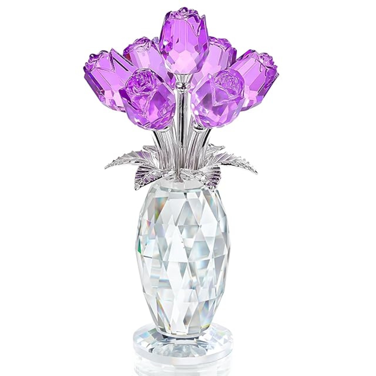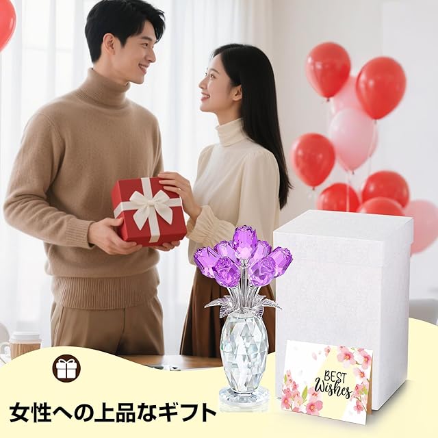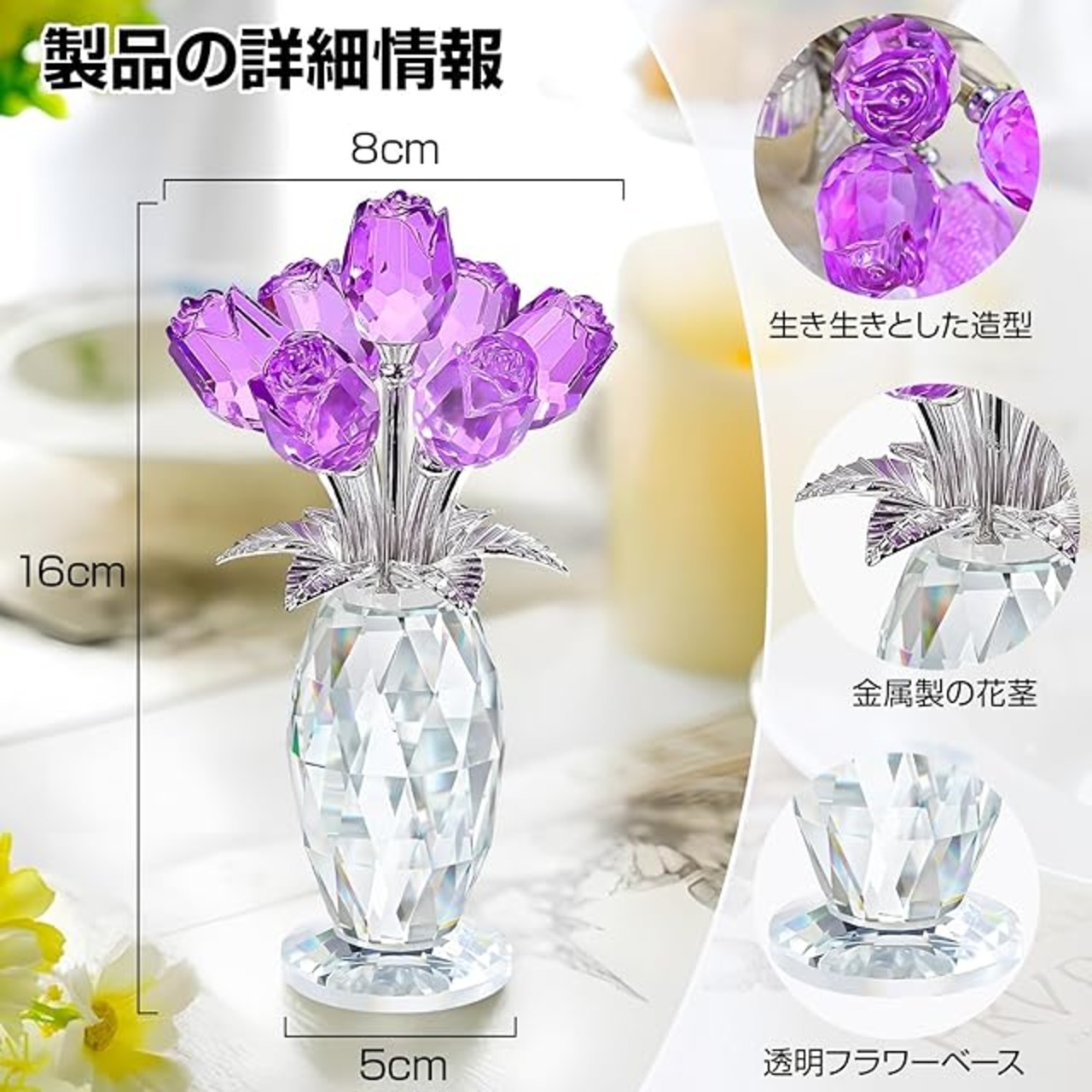 高級クリスタル製のバラ造花 女性 人気 置物 水晶 枯れない花 ガラス細工 置物 結婚記念日 妻 プレゼント 結婚祝い 母の日 送別会 卒業祝い クリスマス 枯れない花のインテリア誕生日結婚記念日退職祝 新年フォーチュンギフト パープル