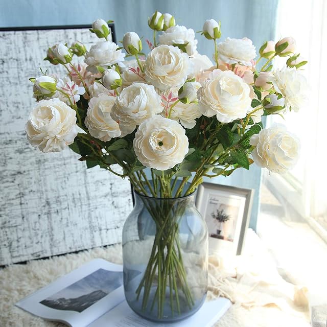 WillingYou 花 造花 フェイクフラワー ドライフラワー 花束 バラ 5本入り ホワイト