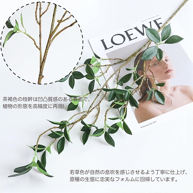 【リアルな美しさ、本物そっくりの質感】職人手作りのフェイクグリーンは、人工観葉植物ならではの繊細な枝ぶりと丸みを帯びた葉が自然の優雅さを再現。大ぶりな枝でインテリアの主役に。光の加減で生まれる陰影までこだわり、造花とは思えない本物そっくりの緑の質感をお楽しみください。