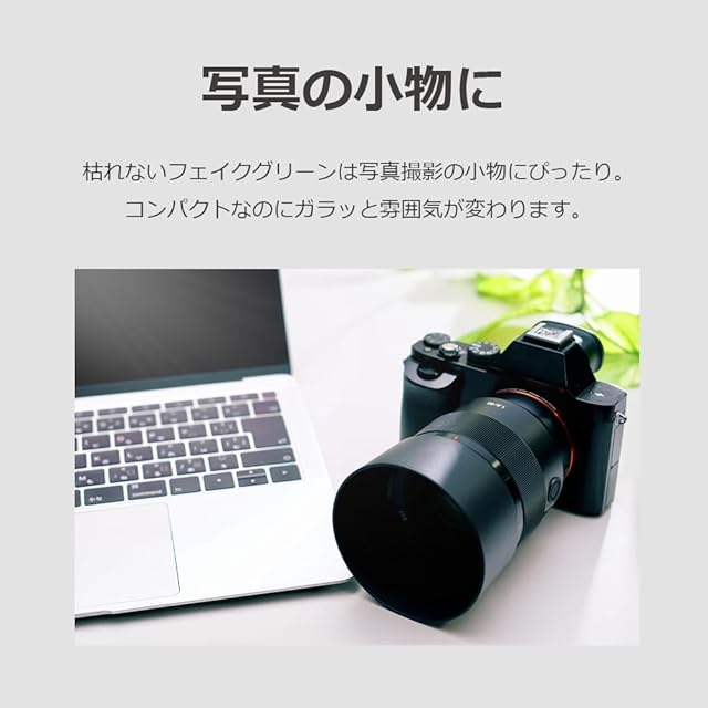 【写真の小物に】枯れないフェイクグリーンは写真撮影の小物にぴったり。コンパクトなのにガラッと雰囲気が変わります。