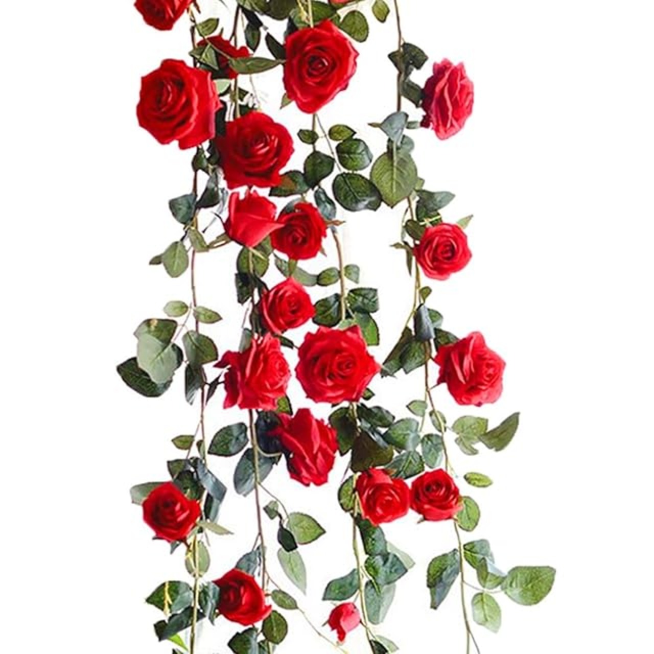商品名:Kugusa バラ ガーランド 造花 インテリア シルクフラワー スワッグ 装飾 パーティー (赤・レッド) 1本