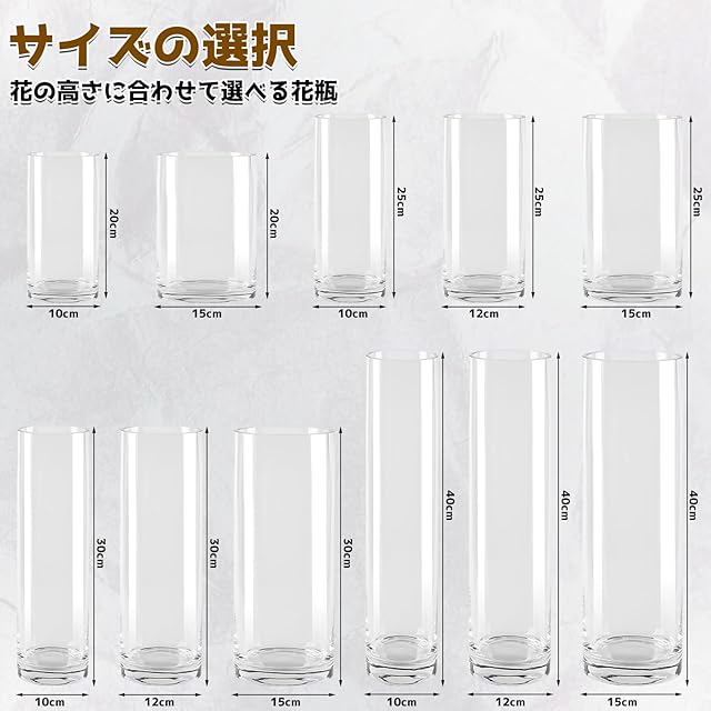 サイズ : サイズ:高さ20cm、直径10cm,花の高さに合わせて選べる花瓶。シンプルな無色透明のデザインで、どんなお花とも相性抜群です。自由にアレンジを楽しみながら、季節やシーンに合わせた演出が可能。※お手持ちの花よりも背が高すぎる花瓶の購入はおすすめしません。