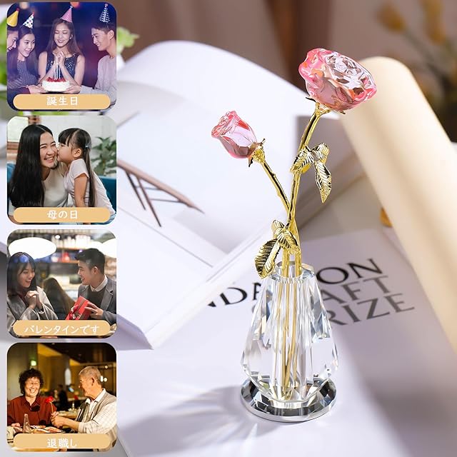 Kertari 誕生日 プレゼント 花 女性 人気 k9 クリスタル バラ花 枯れない花 薔薇 造花 インテリア ギフト 母の日 結婚祝 記念日 ホワイトデー クリスマス 退職 お祝いに適用 母 妻 彼女への贈り物 - ピンク