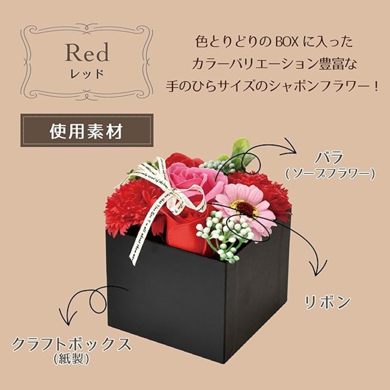 ポピー名古屋 ソープフラワー シャボンフラワー 造花 ギフト プレゼント フラワーボックス バラ ボックス 約12cm S-210 レッド