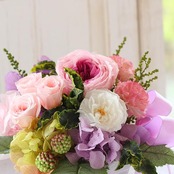 大人気のカップ咲きのオールドローズを中心にソーラーカーネーション(自然素材) プリザーブドフラワーカップ咲きのオールドローズ、ミニバラ、ガーデンローズ、と合わせてソーラーカーネーション、アジサイ4種を使い麗しくエレガントなアレンジに仕上げたプリザーブドフラワーアレンジです。