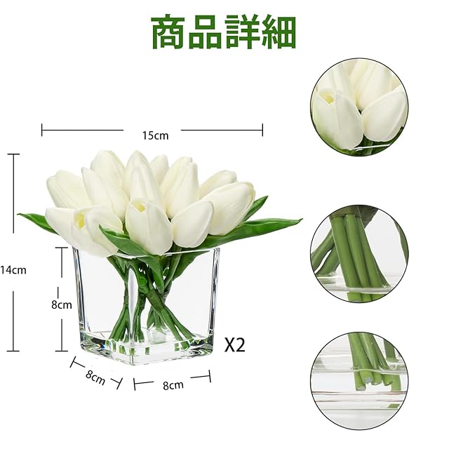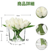 商品名:Villa Como 造花 花束 アートフラワー チューリップ 花瓶付き インテリア 枯れない花 母の日 ギフト 家 事務所 店 喫茶店 結婚式 (白い, 四角い花瓶)