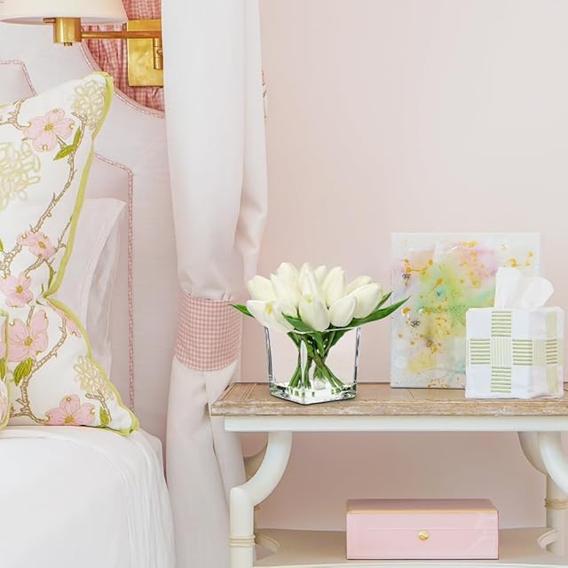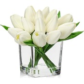 Villa Como 造花 花束 アートフラワー チューリップ 花瓶付き インテリア 枯れない花 母の日 ギフト 家 事務所 店 喫茶店 結婚式 (白い, 四角い花瓶)