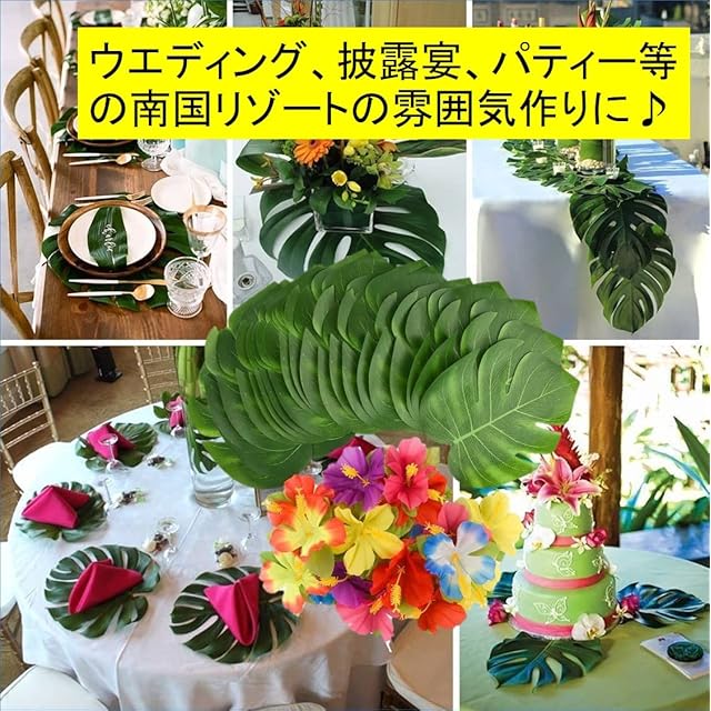 人工 ハイビスカス 造花 30個 モンステラリーフ 30枚セット 販売 ! ハワイアン ハワイ 南国 バリ 風 の 装飾 パーティー 飾り に 葉 葉っぱ ヤシの葉 トロピカルセット