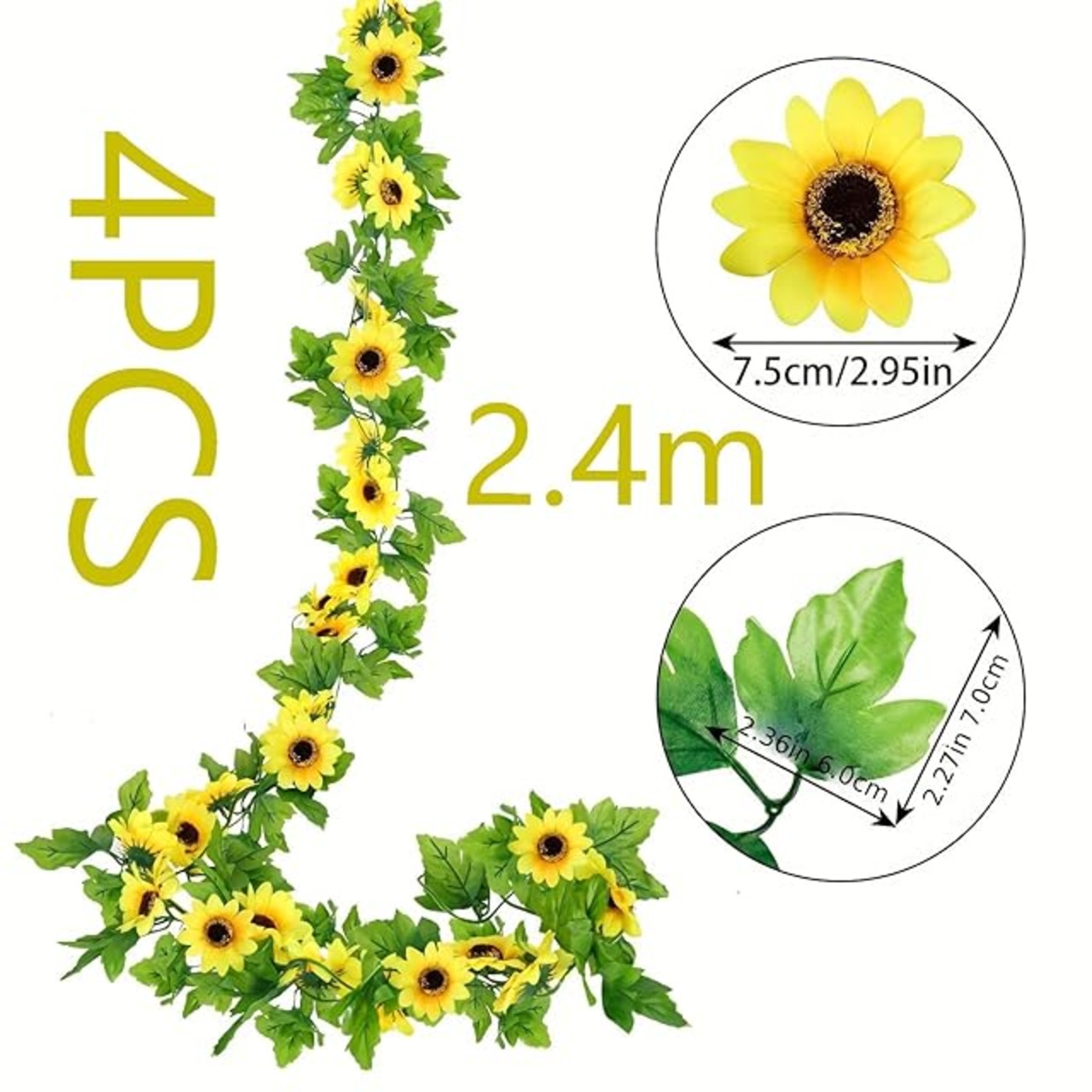 商品名:造花の藤 ひまわり 壁飾り花 枯れない花 ガーランド 向日葵 インテリア飾り 壁掛け 人工花 人工観葉植物 家庭やパーティーの装飾のための花輪を吊る 喫茶店/スーパー/茶室/自宅に適用 2.4メートル (4, ひまわり)