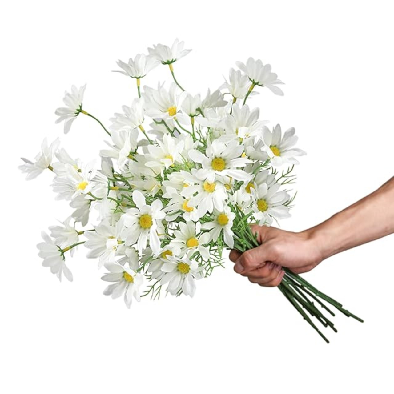 パッケージには、10本のデイジーの人工花が含まれており、束ねたり、個別に飾ったり、お好みに合わせて使用できます。