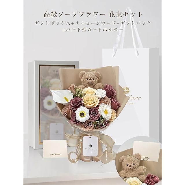 商品名:Fiorifiore 2025新登場 ソープフラワー 花束 かわいい小熊入り ギフトセット 誕生日プレゼント バラ 高級造花ブーケ 母の日記念日卒業入学バレンタインインテリア装飾(Mouffine)