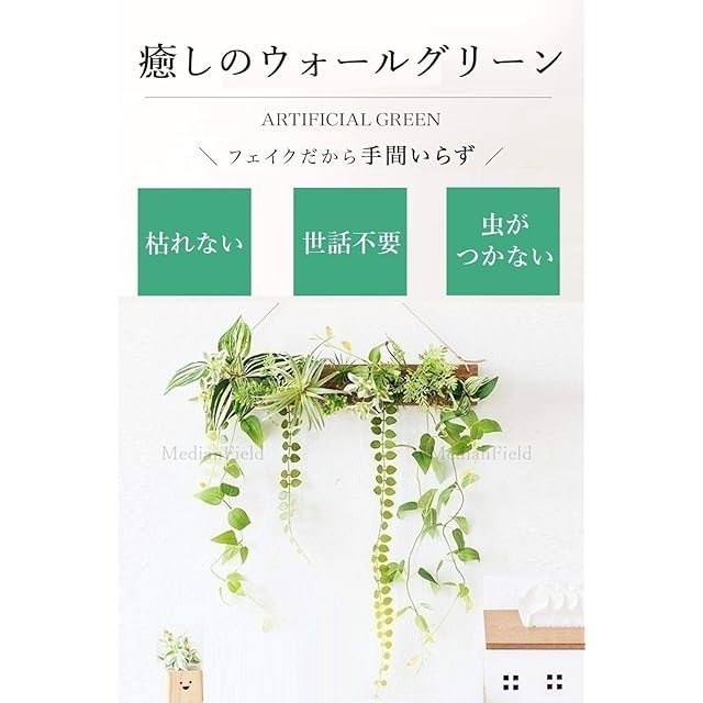 商品名:MedianField 【 ウォールグリーン 壁掛け フェイク 50cm×40cm フック付き 】 フェイクグリーン 観葉植物 造花 おしゃれ 人工観葉植物 エアープランツ 室内 大型 フレーム インテリア アンティーク 雑貨 人工 壁掛 グリーン 緑 植物 ポトス (壁掛け 木)