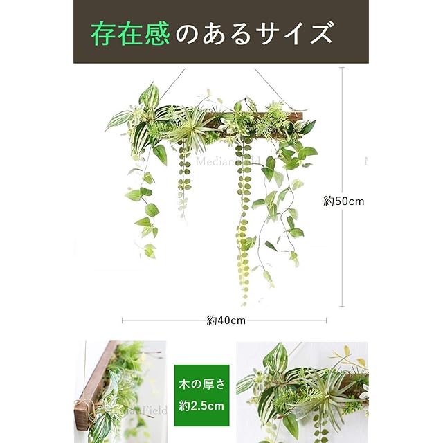MedianField 【 ウォールグリーン 壁掛け フェイク 50cm×40cm フック付き 】 フェイクグリーン 観葉植物 造花 おしゃれ 人工観葉植物 エアープランツ 室内 大型 フレーム インテリア アンティーク 雑貨 人工 壁掛 グリーン 緑 植物 ポトス (壁掛け 木)