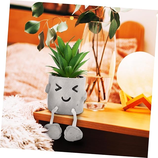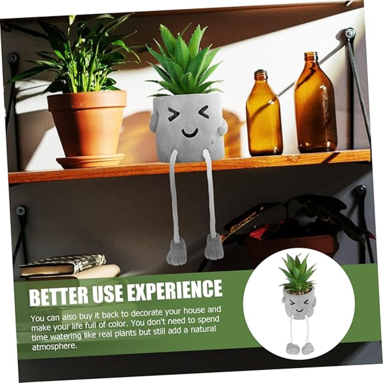 人工観葉植物 フェイクグリーン 造花 フラワーポット 顔文字 多肉植物 ーン おしゃれ かわいい 癒しのポット ーン ミニ お洒落 映える インテリア 小さい 鉢 陶器 室内 屋内 玄関 インテリア 飾り 装飾 (笑顔のスタイル, ワンサイズ)