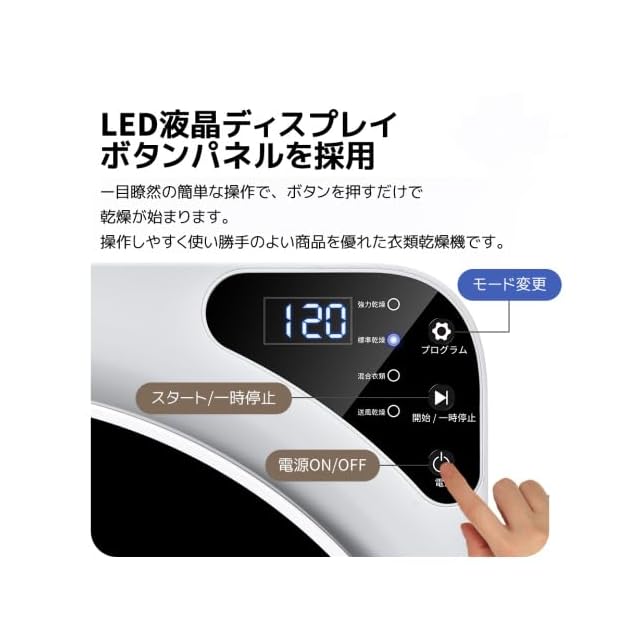 ◆01LED液晶ディスプレイ ボタンパネルを採用,ー目瞭然の簡単な操作で、ボタンを押すだけで乾燥が始まります。操作しやすく使い勝手のよい商品を優れた衣類乾燥機です