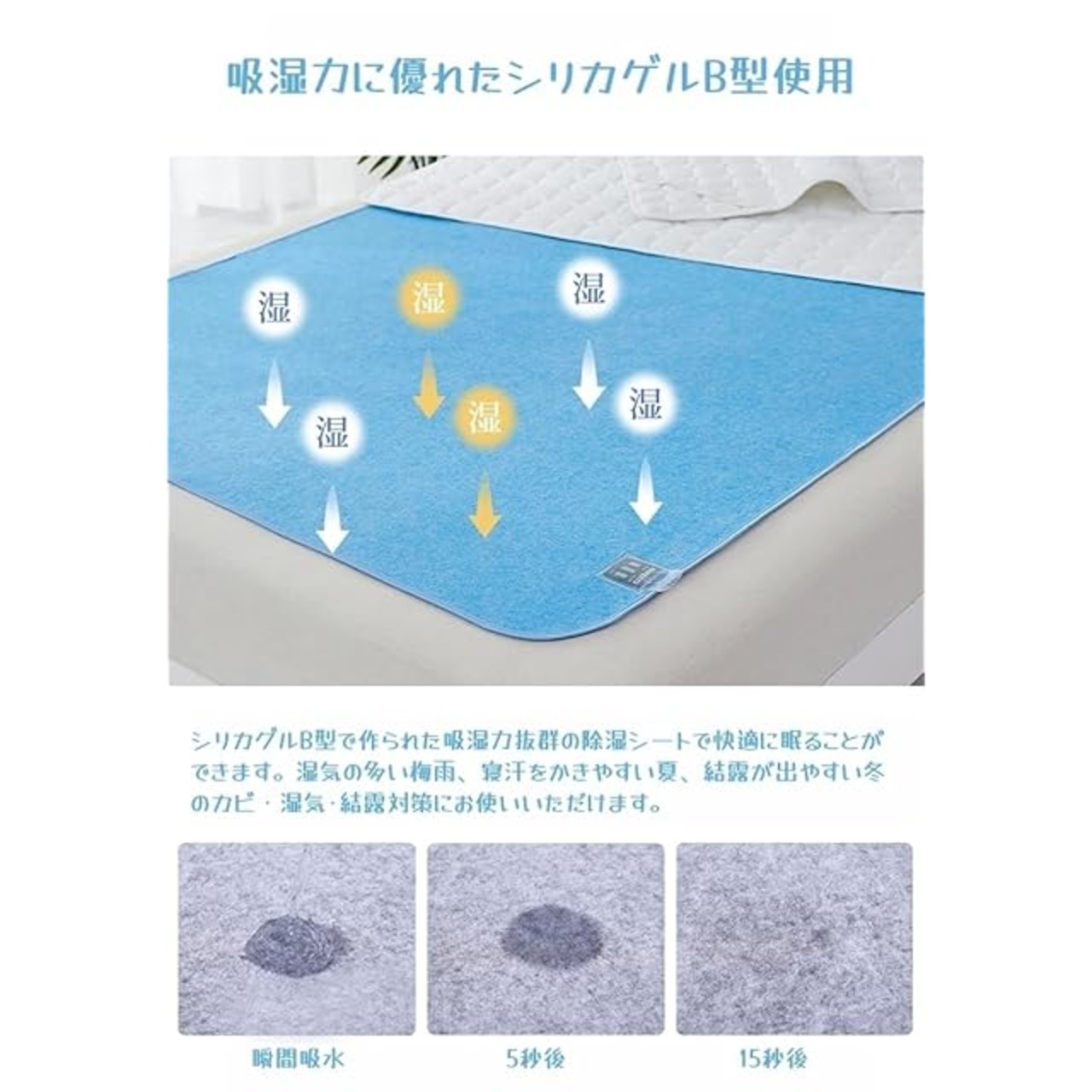 商品名:除湿シート 敷くだけ簡単 2倍シリカゲル入り 汗や湿気を吸収してさらっと快適 備長炭 イヤな臭いも消臭 梅雨結露対策 吸湿センサー付き 洗える 吸湿シート 健康守る SKNX-620