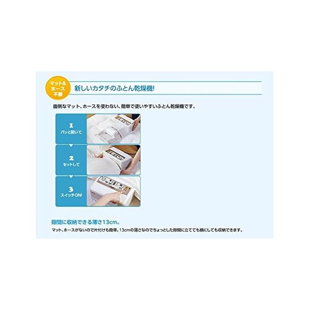 マット&ホース不要のふとん乾燥機「1、パッと開いて 2、セットして 3、スイッチON」