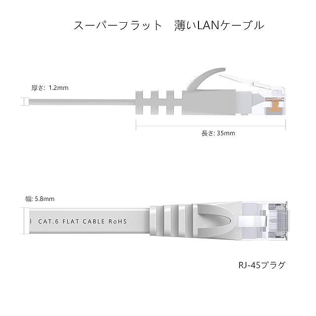 商品名:Lovicool LANケーブル 5m CAT6 フラットタイプ ランケーブル RJ45コネクタ UTP イーサネットケーブル 業務用 ツメ折れ防止 カテゴリ6 らんけーぶる モデム ルーター等に対応 ホワイト