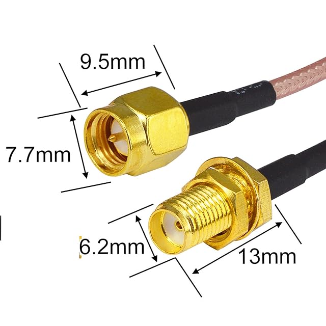✿RG316同軸ケーブル。コネクタ:SMAオス-SMAメス|ケーブル長さ:50cm|コネクタ材質:接続性に優れた純銅(合金なし)|表面処理:金メッキ|インピーダンス:50Ω、低損失。