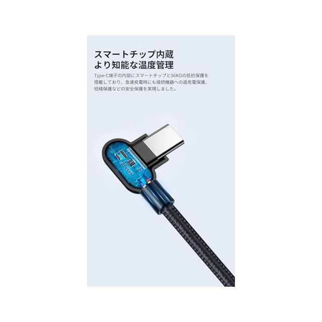 【高品質素材】:高耐久なコネクタを採用し、錆などに強く信号劣化を抑えて、優れた耐久性を備えています。本体は強靭なナイロン編みと高密度配線構造を採用し、30000以上の厳しい折り曲げ試験を耐え、ケーブルの柔軟性と耐屈曲性が強いです。【多重安全保護搭載】:Type-C端子の内部にスマートチップと56KΩの抵抗保護を搭載しており、急速充電時にも接続機器への過充電保護、短絡保護などの安全保護を実現しました。 【LED表示ライト付き】:Type-Cコネクタの裏表にデイモードとナイトモード、二つの明るさの点灯モードがあります。夜間の充電時に暗闇を恐れません。(※デイモード:明るいLED表示ライトを選べます。ナイトモード:暗いLED表示ライトを選べます)。2本セット(1.2m + 1.2m)の内容物を採用しており、色々なシーンでお好きにお使いいただけます。