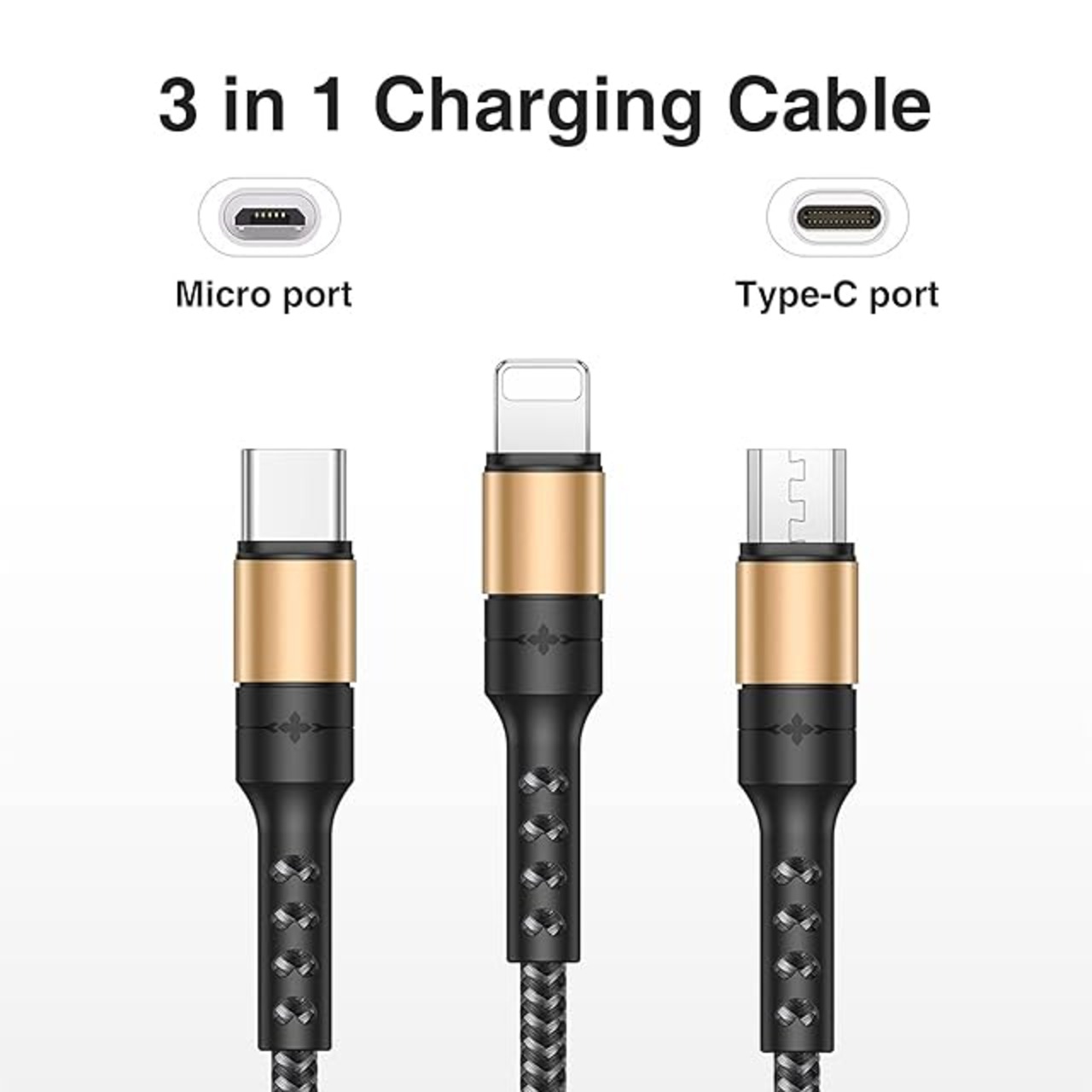 RAVIAD 3in1 充電ケーブル USB ケーブル 充電コード USB Type C ケーブル Micro USB ケーブル Phone 充電ケーブル 3台同時給電可能 Phone Android タイプC Galaxy Kindle 等全機種対応 超高耐久 - 1.2M ゴールド