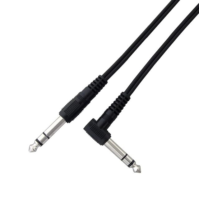 6.3mmステレオ標準L型(オス)と6.3mmステレオ標準直型(オス)のオーディオケーブルです。