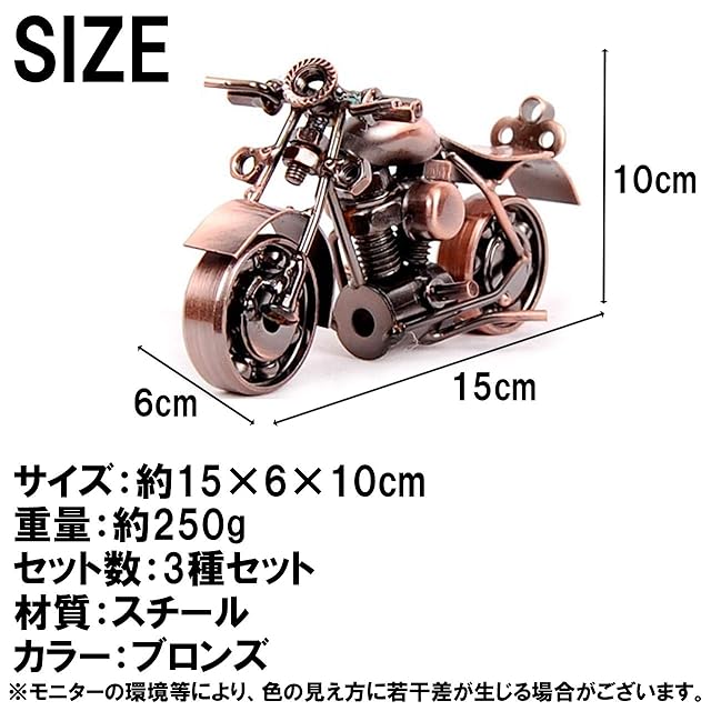 HAMILO オブジェ バイク インテリア アンティーク調 クラシック ミニチュア 置物 3種セット (ブロンズ)