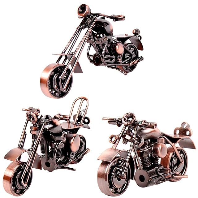 男女を問わず、バイクが好きだという人は大勢います。自分が乗る機会はないとしてもバイクのカッコ良さは多くの人を引きつけます。そんなバイクをミニチュアサイズにして気軽に飾れたらいいですよね。<br><br>このバイクのオブジェはアンティーク調の風合いがとても目を引きます。手のひらサイズの中に一台のバイクが精巧に作られています。何もなかった空間にそっと置くだけでワンランク上のインテリアを楽しむことができます。<br><br>人気の3つのタイプがセットになっているのでとてもお得です。さりげなく別々の場所に飾る事もできますし、3タイプまとめ並べてインパクトをつけることもできます。コンパクトなサイズですのでどこにでも置けておすすめです。<br><br>またカフェや美容院などのお店に飾るのもおすすめです。さらにご自宅用としてはもちろん、プレゼントとして贈るのも良いでしょう。バイク好きの方やアンティーク雑貨の好きな方へ贈るととても喜ばれます。<br><br>セット数:3種セット サイズ:約15×6×10cm 重量:約250g 材質:スチール ※モニターの環境により、色の見え方に若干差が生じる場合がございます。
